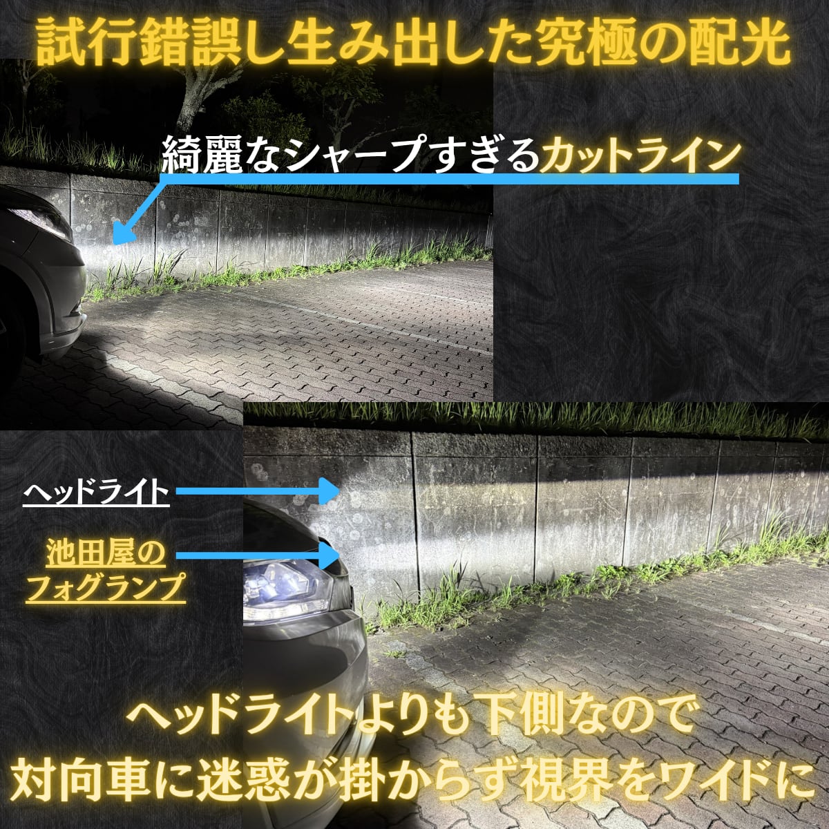 ・池田フォグの2色切替式爆光フォグランプになります。この価格でこの明るさはほかにはありません。有名メーカーのフォグランプをもしのぐ明るさ、最高の配光、きれいな色味をご体感ください。