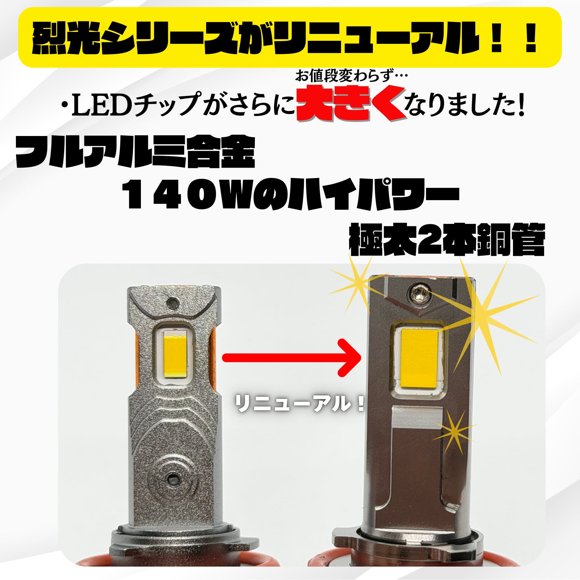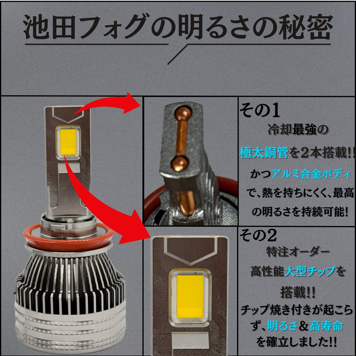 ★100Wを超えるバルブよりも数分後の明るさはこちらの方が上です。 最強空冷ファン、極太銅管による冷却機能最強です。