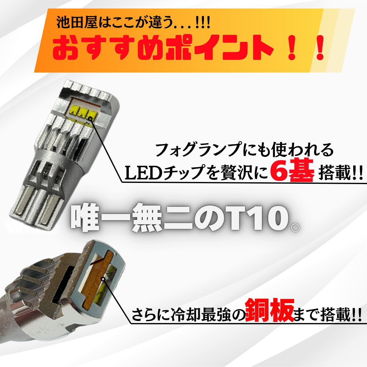 こちらは明るすぎるT10になります!フォグランプのLEDチップを贅沢に6基搭載!